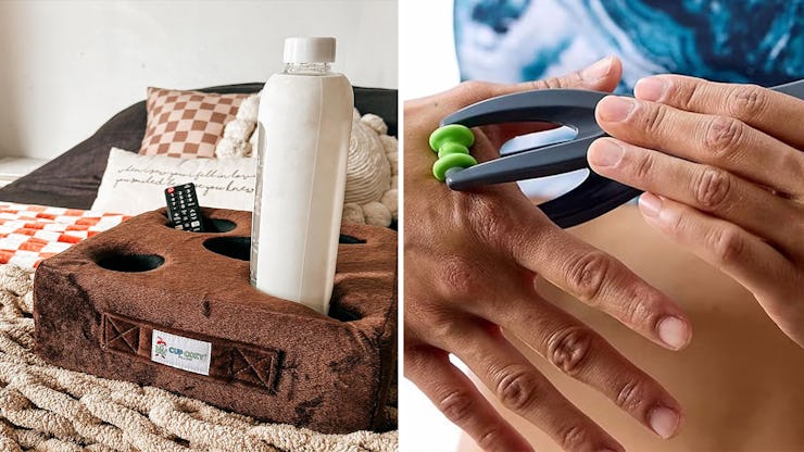 With five slots, this cup holder pillow give you a convenient space to put down your coffee mug and water bottle, as well as stash a phone or remote. It will also keep your drink cold or hot for longer thanks to its plush foam interior. One reviewer wrote, “This has been worth every cent and more, especially if you have a sectional and sit in the middle!”