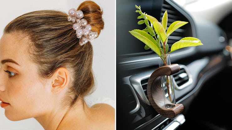 Add some bling to your updo with these pearl hair scrunches that elevate a simple ponytail and make a top knot positively glam. The stretchy woven rope is adorned with rhinestone beads and pearls in white or champagne. They are like jewelry for your hair. “Love wearing them to jazz up my hair on days [when] I want to exert minimum effort,” said one reviewer. This is a pack of three.