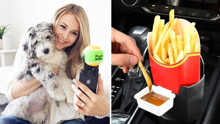 Keep your pup’s gaze effortlessly aimed at your phone’s camera lens with this pet selfie stick. It’s designed to attach to the top of all phone models thanks to a spring-loaded clip and features an attention-grabbing tennis ball to direct your dog’s eyes toward the phone for a perfect portrait. Say goodbye to spending hours utilizing high-pitched pleas and wild hand gestures — apparently, all you needed was a trusty tennis ball.