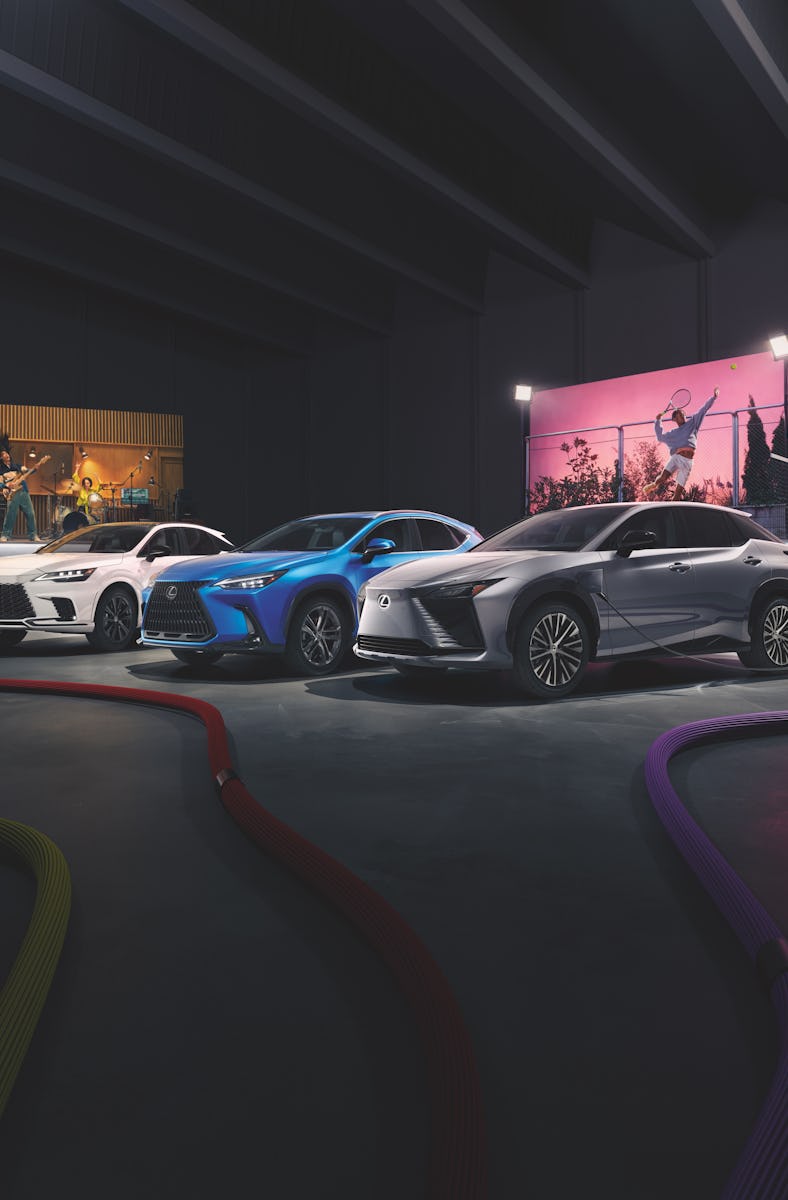 Lexus’s electrified powertrains — the RX hybrid (an HEV), the NX plug-in hybrid (a PHEV), and the RZ all-electric (a BEV) — all offer an impressive driving experience. Beyond exceptional performance, they also fully deliver on comfort and luxury, with details like a driver-focused Tazuna interior and ambient lighting with shadow illumination (available in the RZ). The three vehicle categories truly represent a range of options that can elevate any lifestyle.